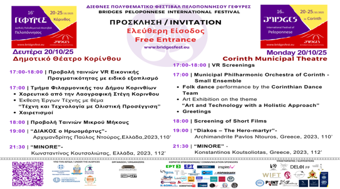 Σας περιμένουμε με χαρά στην έναρξη του 16ου Διεθνούς Πολυθεματικού Φεστιβάλ Πελοποννήσου ΓΕΦΥΡΕΣ, αύριο στις 17:00, στο Δημοτικό Θέατρο Κορίνθου “Θωμάς Θωμαΐδης”!